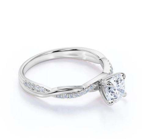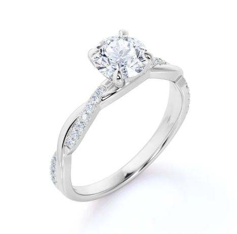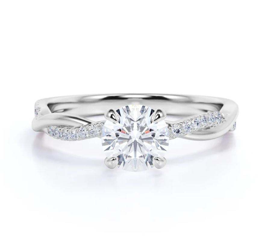 แหวนหมั้นมอสซาไนต์ทรงกลม 1.25 กะรัต ดีไซน์อินฟินิตี้ ชุบทอง แหวนสัญญาอินฟินิตี้ แหวนเจ้าสาวมินิมอล แหวนดีไซน์ไม่ซ้ำใคร