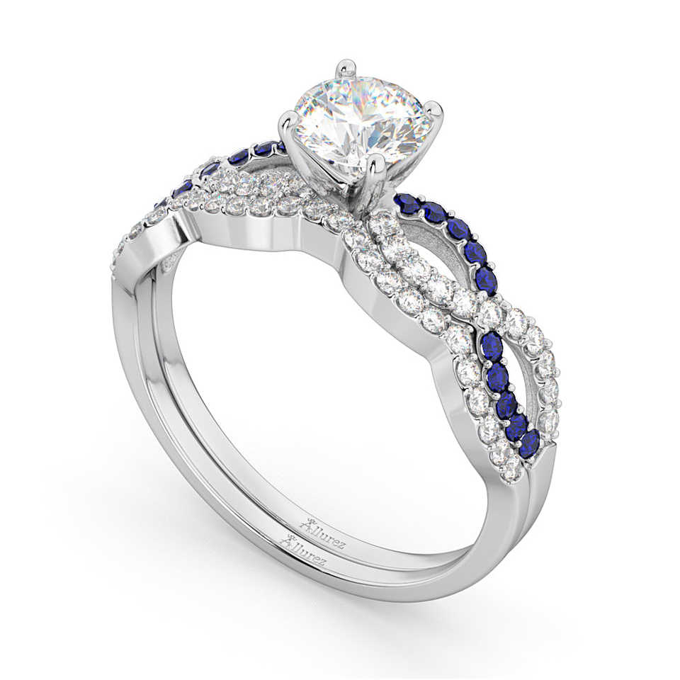 แหวนผู้ชายทองคำขาว 14K อินฟินิตี้ ประดับไพลินสีน้ำเงินและเพชร 0.34 กะรัต ชุดเครื่องประดับเจ้าสาวทองคำเหลือง ตัดเจียระไนอัญมณี