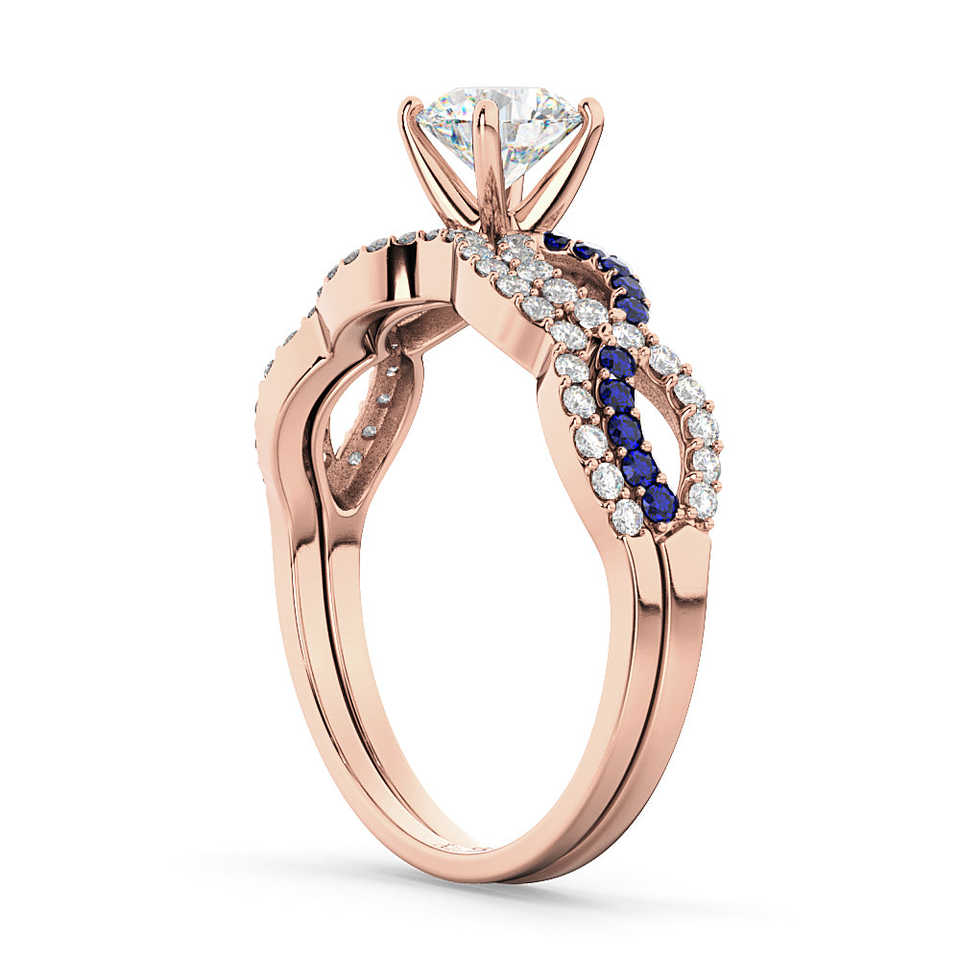 ชุดเครื่องประดับเจ้าสาวอินฟินิตี้ 18k โรสโกลด์ ประดับเพชรทรงมรกต 0.34 กะรัต ไพลินสีน้ำเงิน และไข่มุก พร้อมเพชรซิร์คอนและคริสตัล