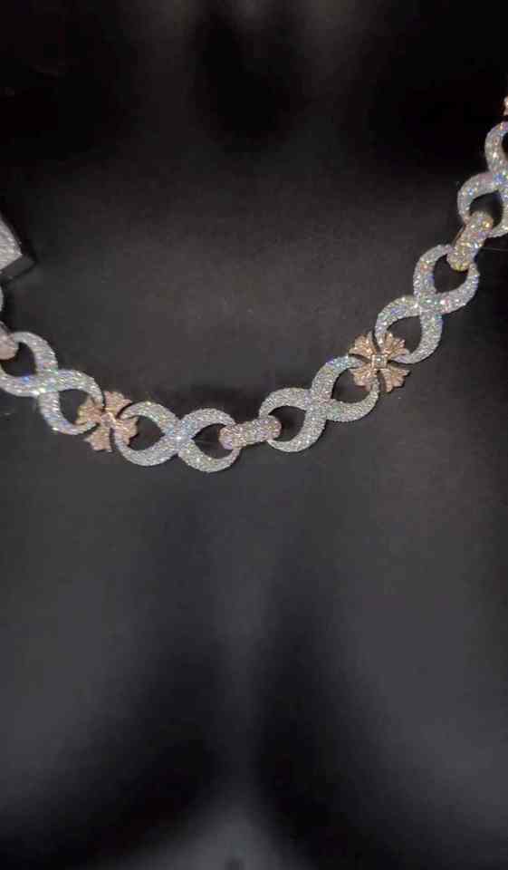 สร้อยคอคิวบันแบบอินฟินิตี้ ประดับเพชรโมอิสซาไนต์ เงินแท้ 925 สองสี สไตล์ฮิปฮอป เหมาะสำหรับงานปาร์ตี้ ของขวัญ
