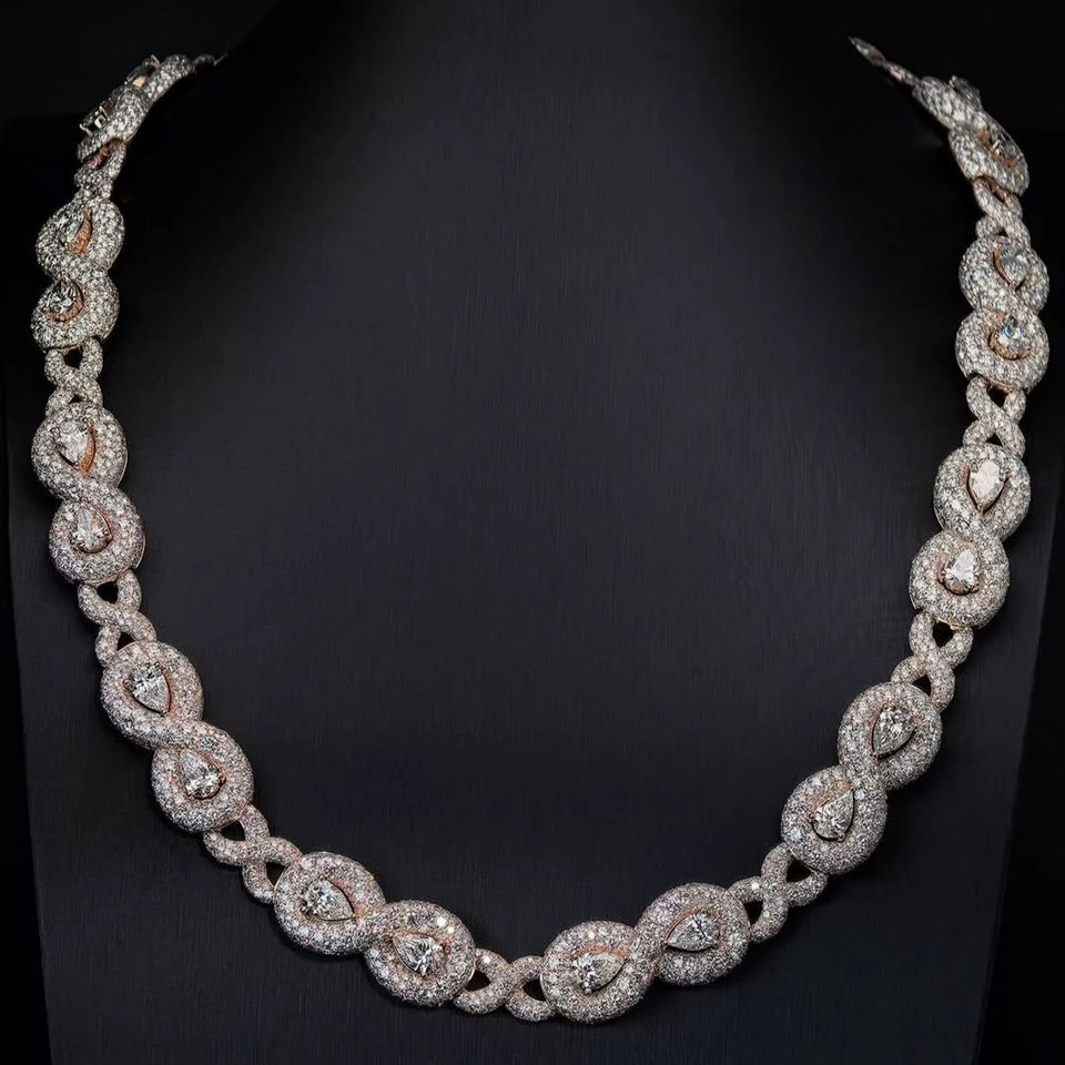 Infinity Bling Gold Plated 925 Silver Pear And Round Cut Moissanite Diamond Cuban Chain Necklace Gift for Hip Hop Party Jewelry