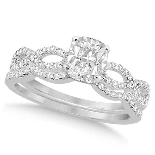 ชุดแหวนแต่งงานอินฟินิตี้คัชชั่นคัท 1.13 กะรัต ทองคำขาว 18K เครื่องประดับชั้นดี