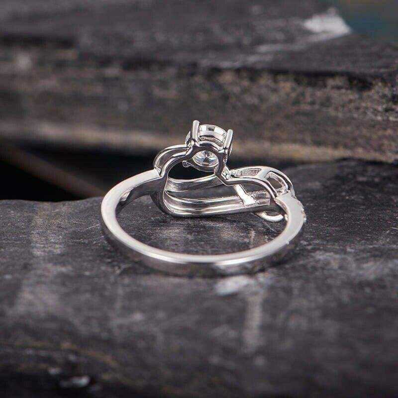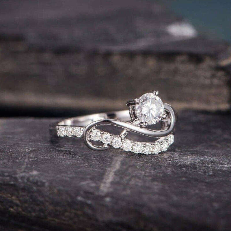 แหวนหมั้นเพชรโมอิสซาไนต์ทรงบริลเลียนต์ 1.00 กะรัต Infinity Design ประดับเพชรแบบ Pave Setting ดีไซน์โค้งสลับกันเป็นวงแหวนแต่งงาน ทำจากเงินแท้ 925