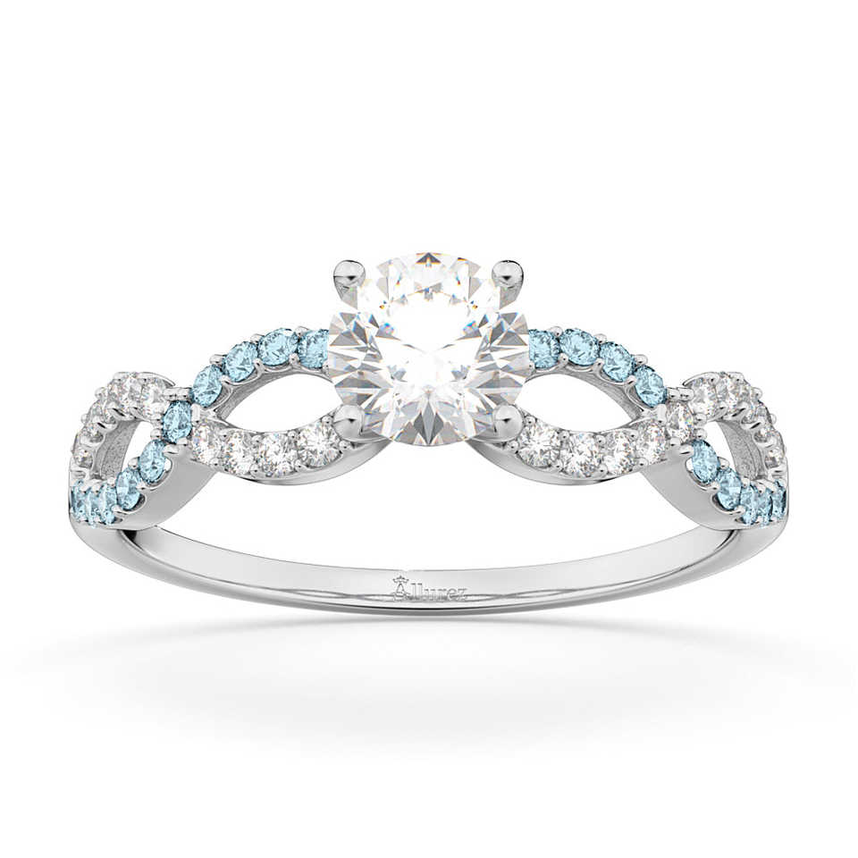 แหวนเพชรอินฟินิตี้และอะความารีนทรงคลัสเตอร์ ประดับด้วยโอปอลเอธิโอเปีย ตัดทรงคุชชั่น 0.21 กะรัต แหวนหมั้นและแหวนแต่งงาน ทำจากแพลตตินัม