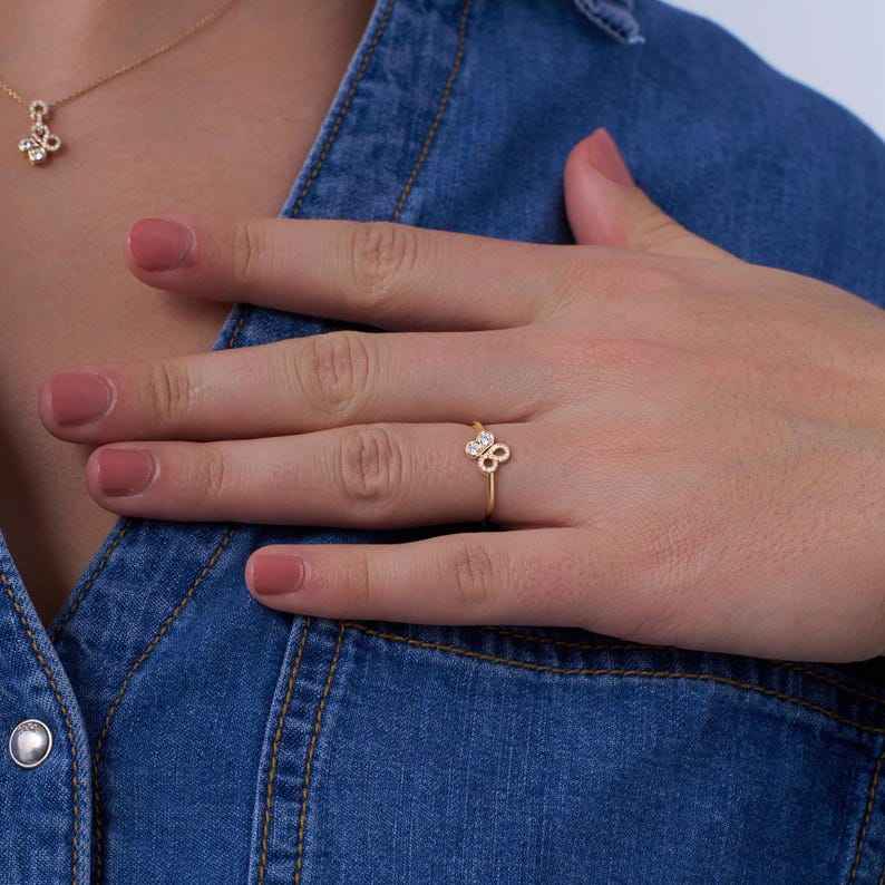 แหวนหมั้นทอง14K ประดับเพชรทรงกลมดีไซน์แบบมินิมอลแถบแต่งงานแบบอินฟินิตี้
