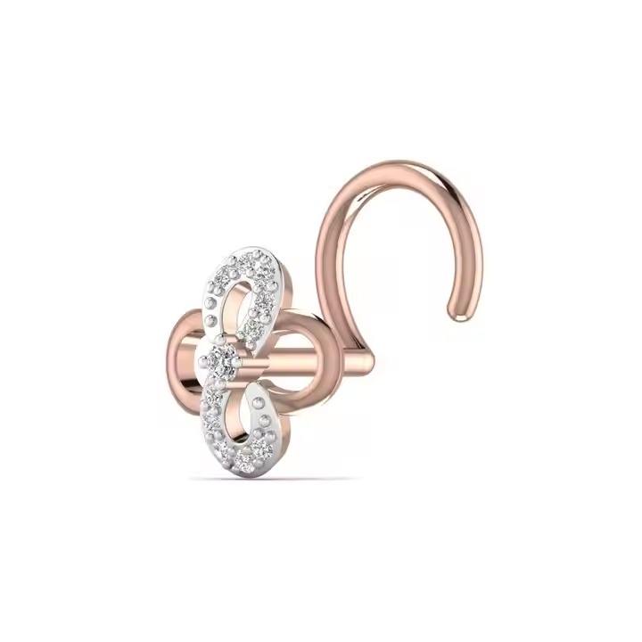 สัญลักษณ์อินฟินิตี้ศรัทธา0.048CT หมุดจมูกนิรันดร์14KT กลมเพชรธรรมชาติสีขาวกุหลาบสีเหลืองทองเครื่องประดับร่างกายสำหรับผู้หญิงงานแต่งงาน