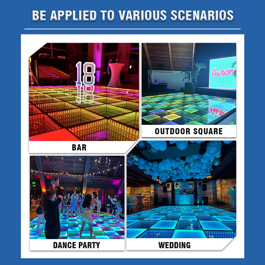 พื้นเต้นรำ LED ไร้สาย Infinity Fast Setup แบบ 3 มิติ สำหรับงานปาร์ตี้ งานแต่งงาน ไนท์คลับ ไฟเวทีสำหรับสตูดิโอเต้นรำ