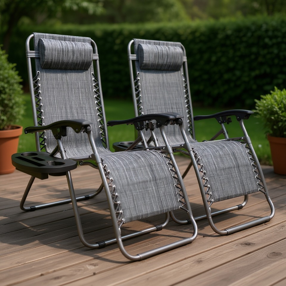 เก้าอี้พักผ่อนปรับเอนได้ Infinity Outdoor Zero Gravity พร้อมหมอนและถาดวางของ สีเทา สำหรับระเบียง ลานบ้าน และสวน