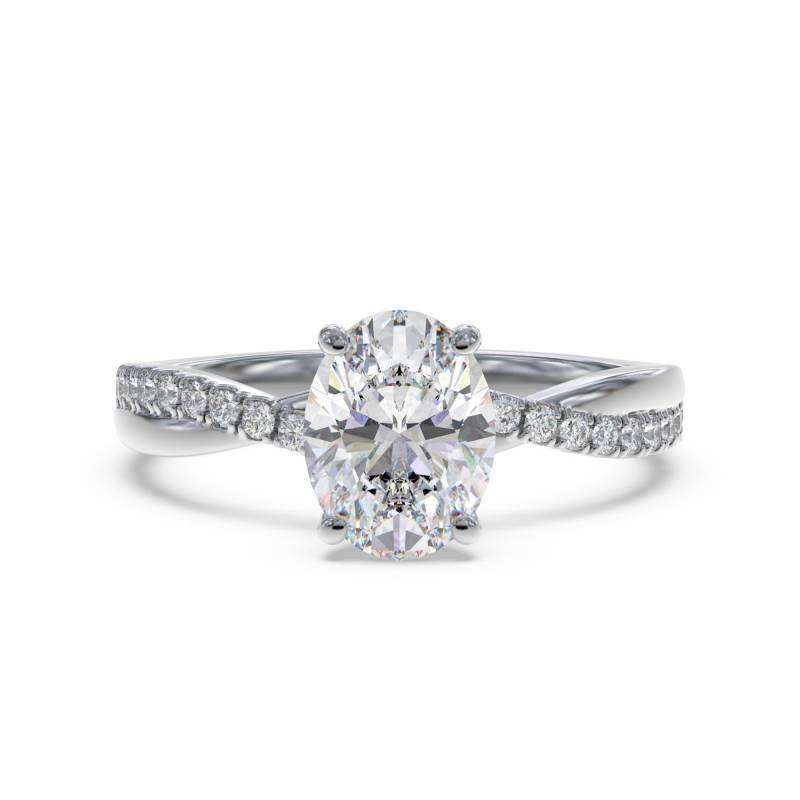 แหวนหมั้นทรงวงรีและทรงกลม Infinity ประดับเพชรเพาะเลี้ยง 0.75 กะรัต ตัวเรือนทอง 18K และแพลตตินัม
