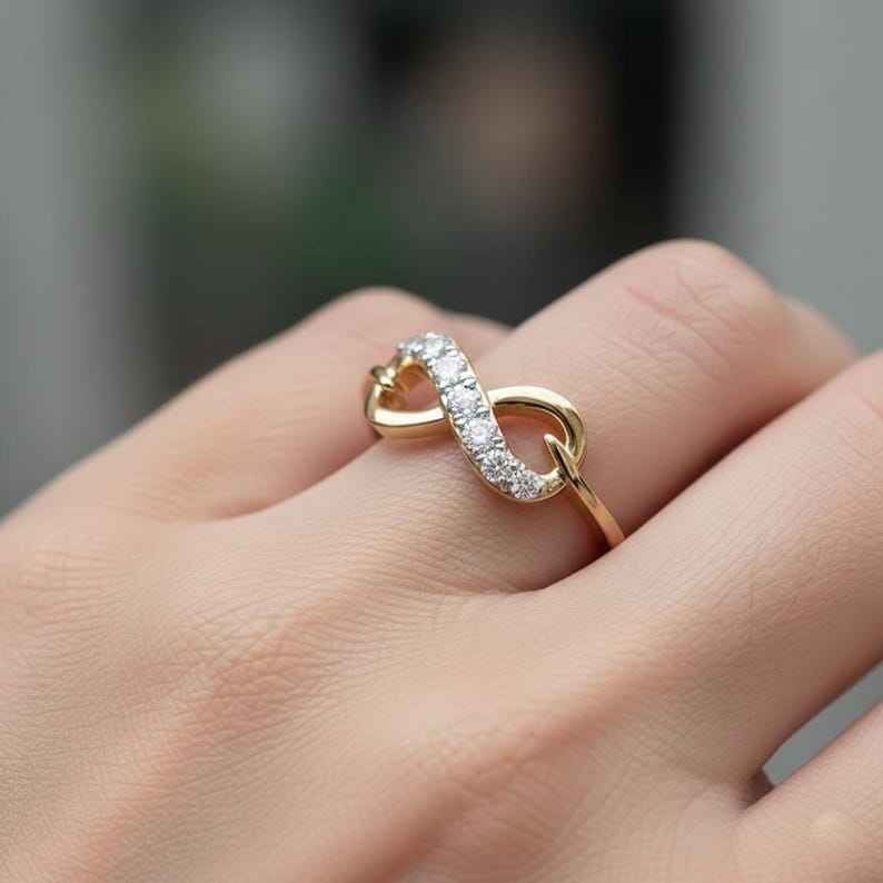 แหวนอินฟินิตี้ประดับมอสซาไนต์ทรงกลม แหวนหมั้นเรียบหรู ทองคำแท้ 14K แหวนสัญญาแบบมินิมอล ของขวัญสุดพิเศษสำหรับแฟนสาว