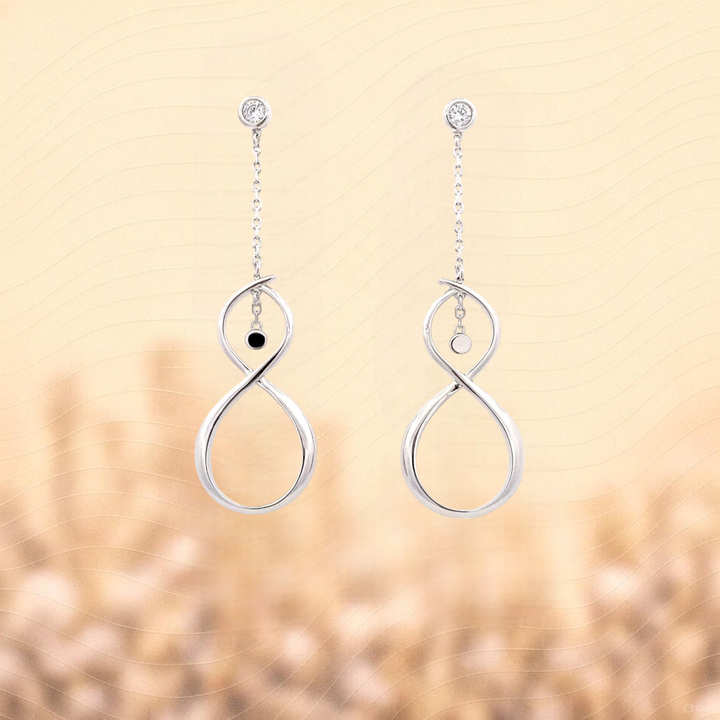 แหวนอินฟินิตี้และต่างหูทองคำขาวแบบห้อย ลายฮวงจุ้ย ผู้พิทักษ์แห่งความสุข ความกล้าหาญ บานสะพรั่งนิรันดร์ ลมแห่งชัยชนะ
