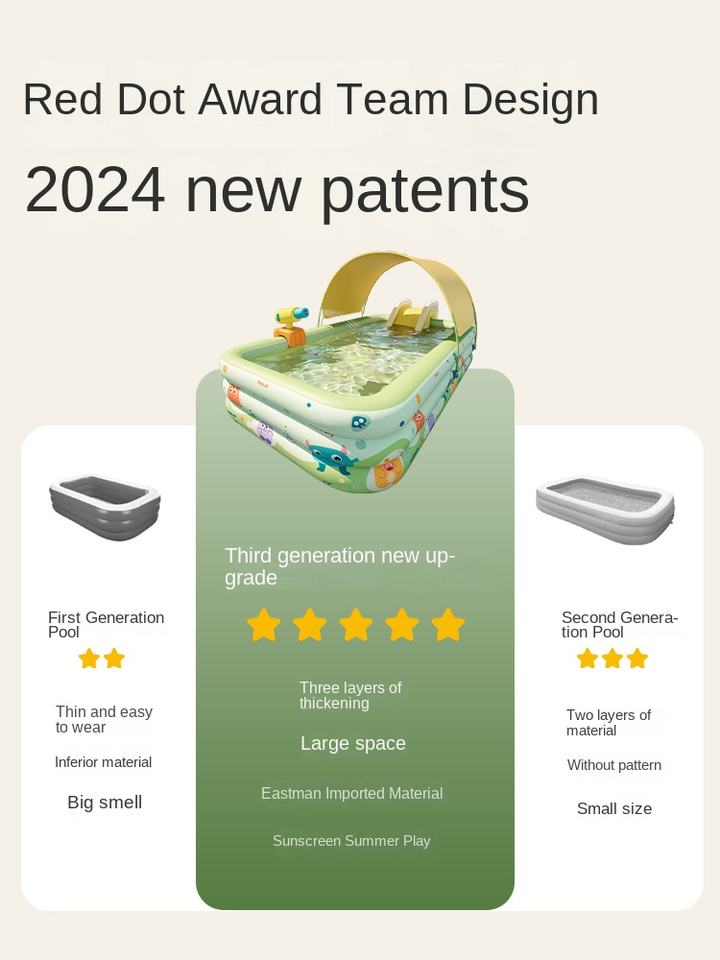 สระสปาเป่าลมหนา2.5มม. สำหรับเด็กเล่นในบ้านสระว่ายน้ำกลางแจ้งลานกว้างพับได้