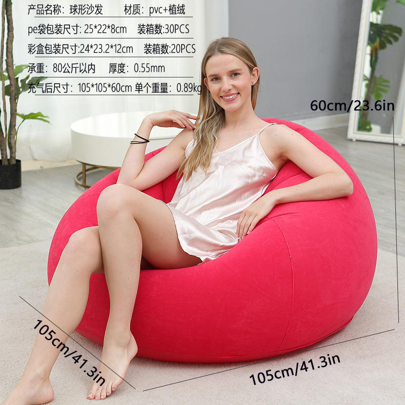 โซฟาบีนแบ็กเป่าลม ขนาด 105x105x60 ซม. ผลิตจาก PVC แบบกำมะหยี่ ดีไซน์ทรงกลม สำหรับผู้ใหญ่ ใช้ในห้องนั่งเล่น