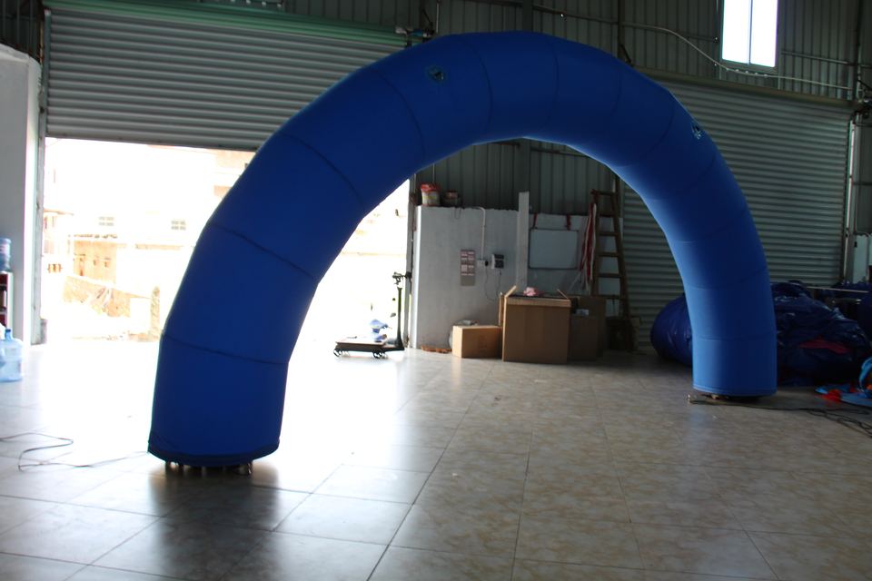 ซุ้มโค้งสีน้ำเงินกันน้ำกันแดดแบบเป่าลมพร้อมปั๊มลมไฟฟ้าสูงกว่า 12 ฟุตสำหรับงานโฆษณา