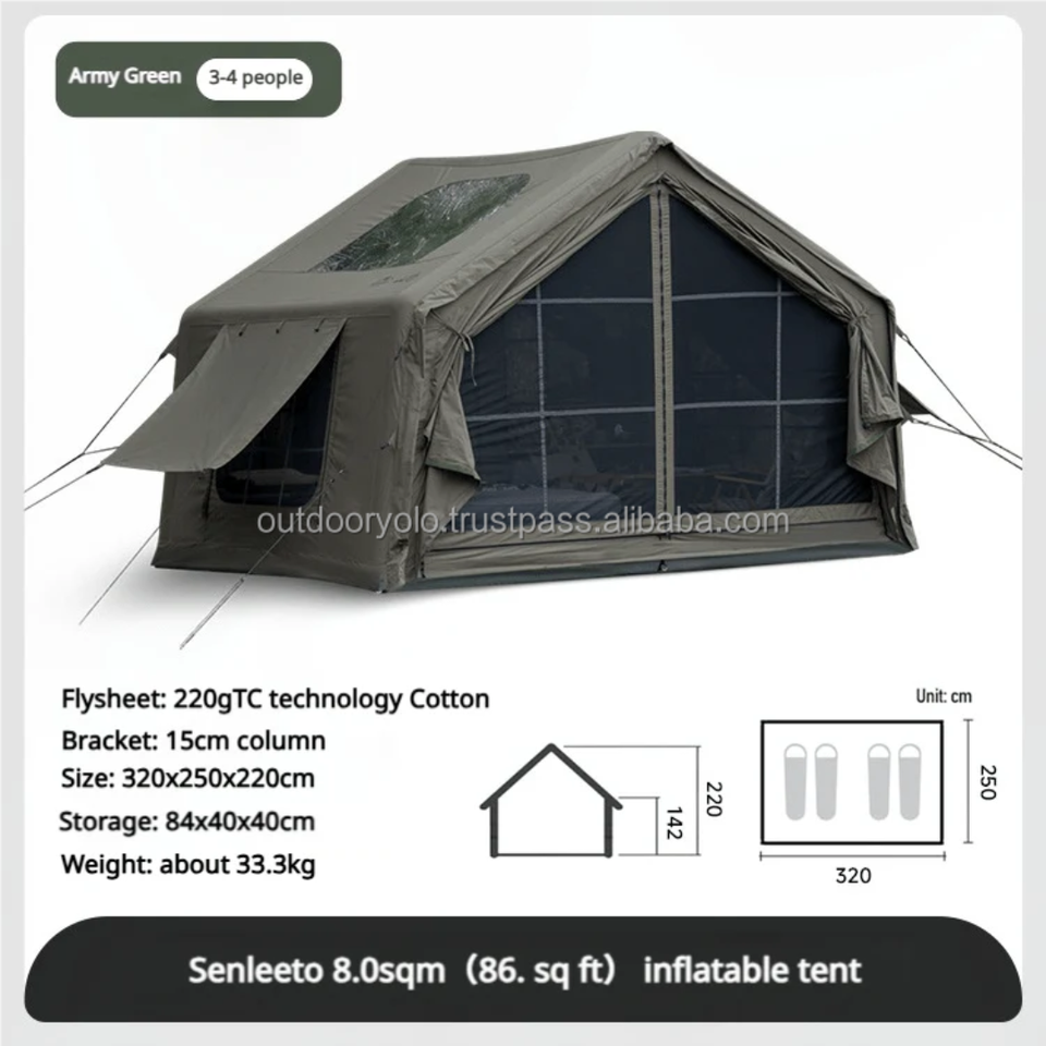 เต็นท์ผ้าใบแบบเป่าลมสำหรับการตั้งแคมป์2-8คนเต็นท์ผ้าใบขนาดใหญ่สำหรับการตั้งแคมป์กลางแจ้งสำหรับครอบครัวการเดินป่า