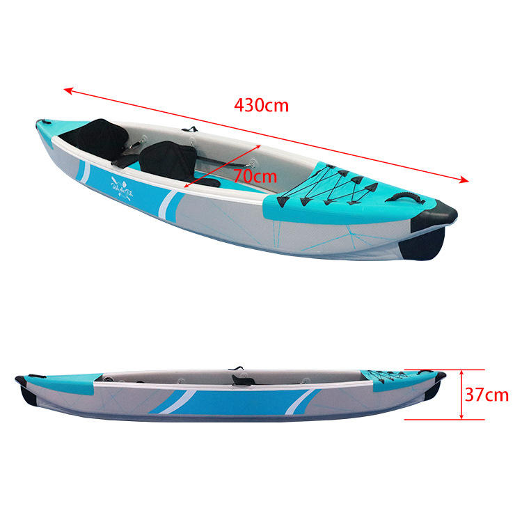เรือคายัคเป่าลมคู่ ขนาด 430 ซม. ผลิตจาก PVC ทนทาน เหมาะสำหรับตกปลาในทะเลสาบ แม่น้ำ และกิจกรรมสันทนาการ สำหรับ 2 คนพาย