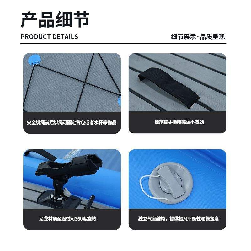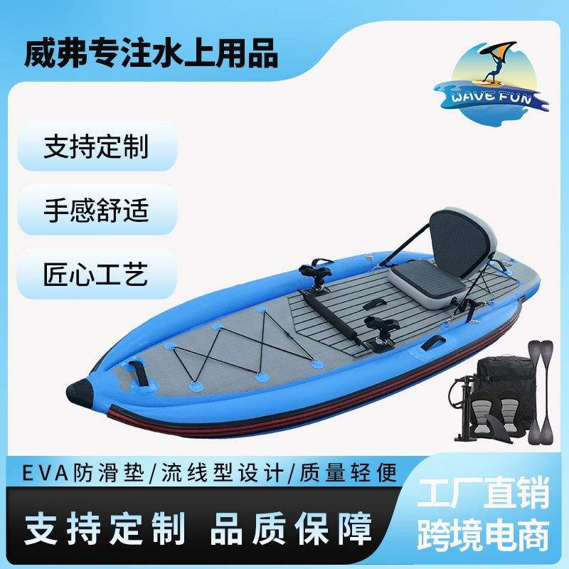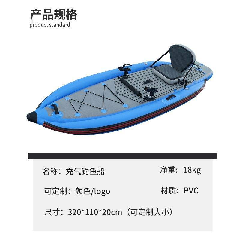 เรือคายัคตกปลาแบบเป่าลม 3.1-4 ม. ทำจาก PVC หนา 2 มม. ทนทาน กันลื่น สำหรับใช้ในทะเลสาบ แม่น้ำ เหมาะสำหรับผู้พายคนเดียว