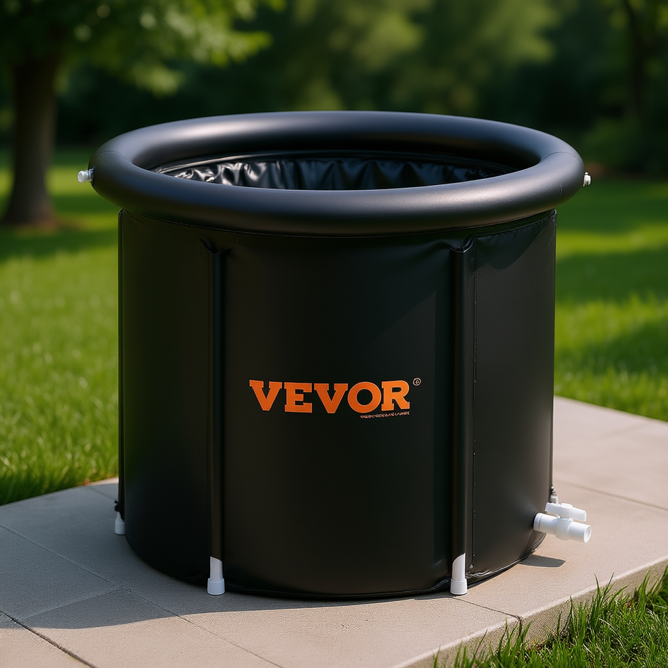 อ่างน้ำแข็งพองลม Vevor ขนาด 50-59 แกลลอน อ่างน้ำเย็นแบบพกพาสำหรับนักกีฬา อ่างอาบน้ำทรงกลมทำจาก PVC พร้อมชุดอุปกรณ์เสริม
