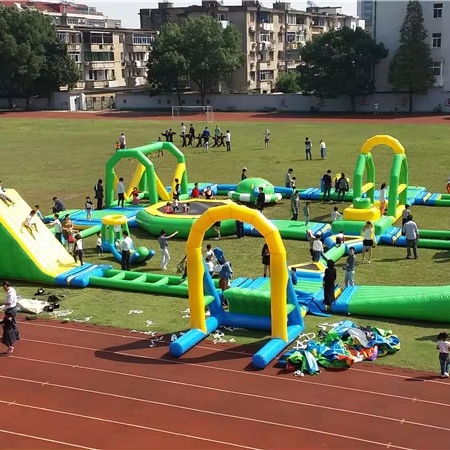 สวนน้ำเป่าลมขนาดใหญ่สำหรับกิจกรรมทางน้ำในฤดูร้อน ความสนุกสนานและการแข่งขัน วัสดุไวนิล/พีวีซี สำหรับใช้งานเชิงพาณิชย์