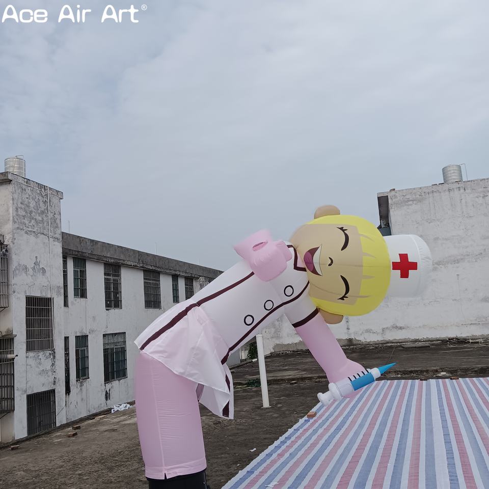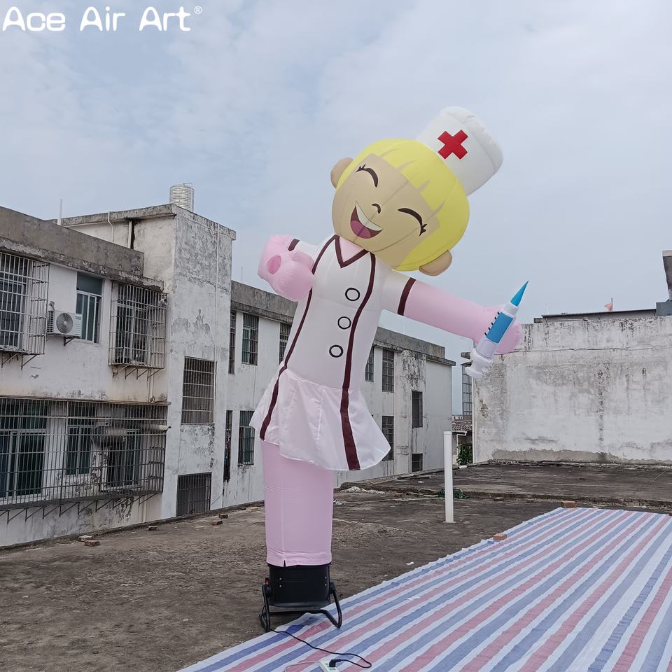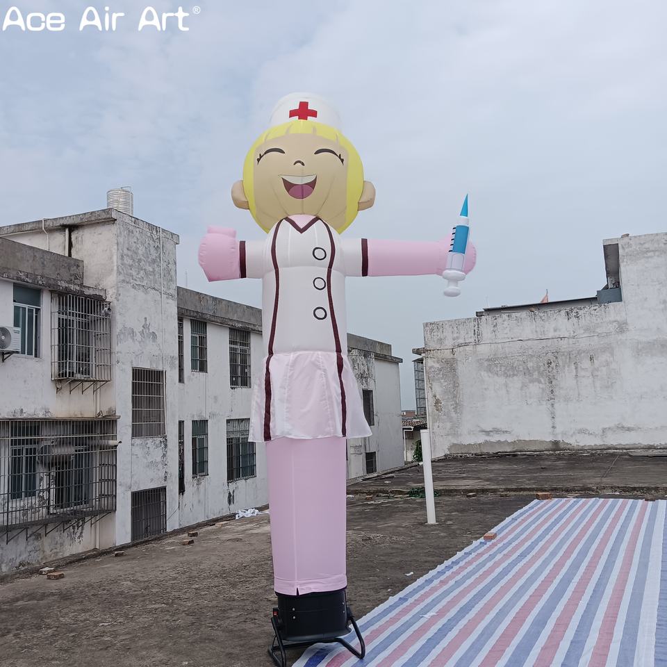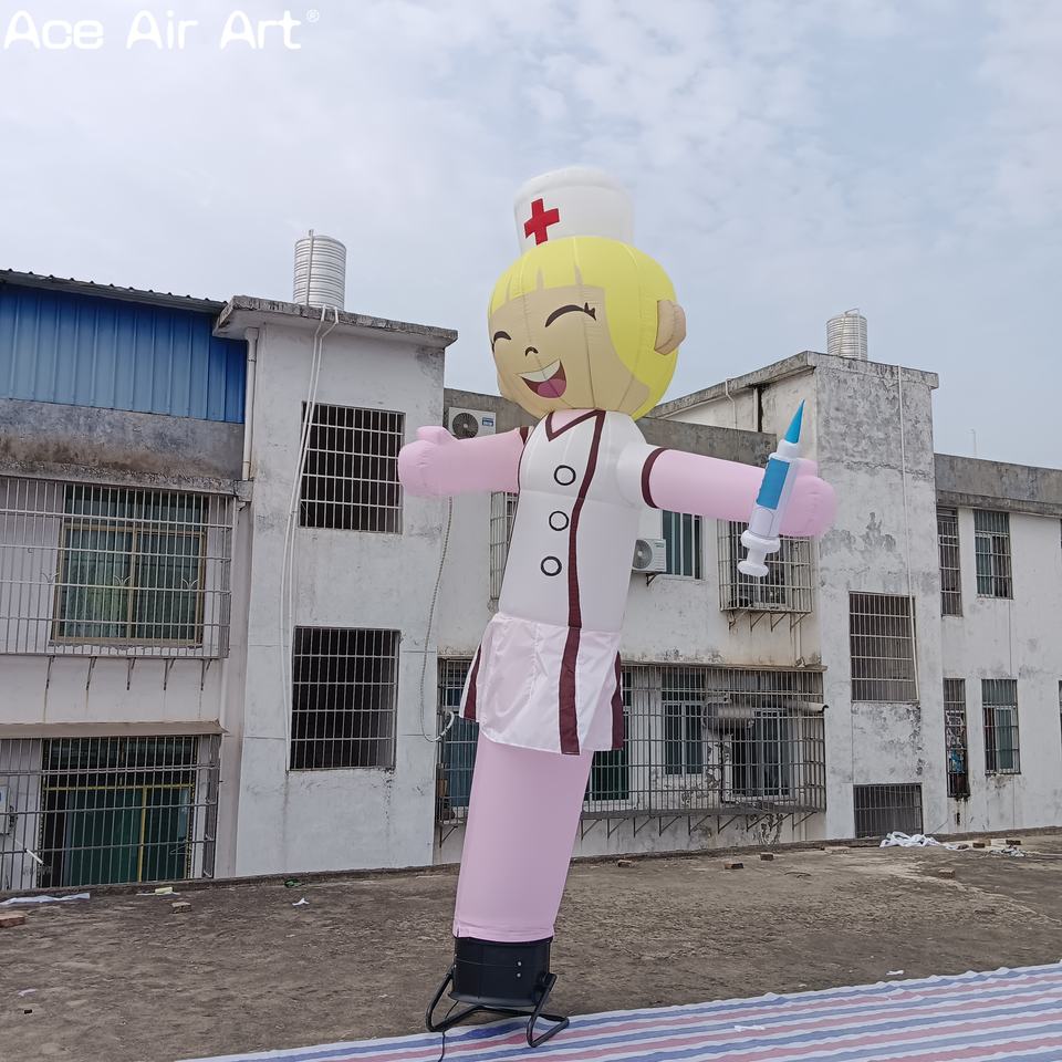หลอดพยาบาลเป่าลมสำหรับโฆษณาในโรงพยาบาลนักเต้นท้องฟ้าแบบเป่าลมตัวละครพยาบาลมีความสุขสำหรับการส่งเสริมการขายทางการแพทย์