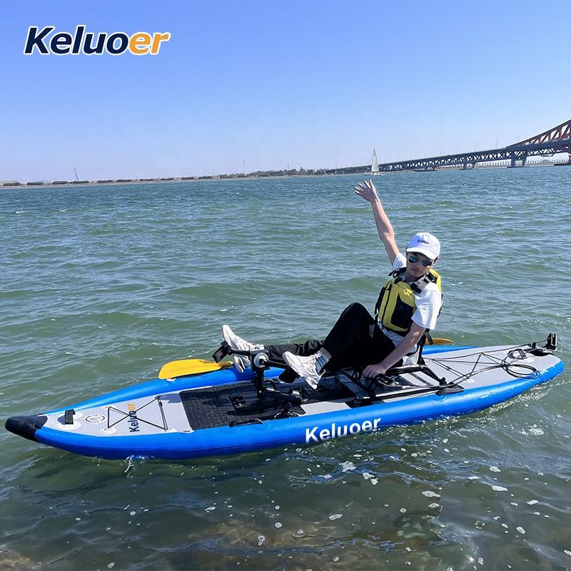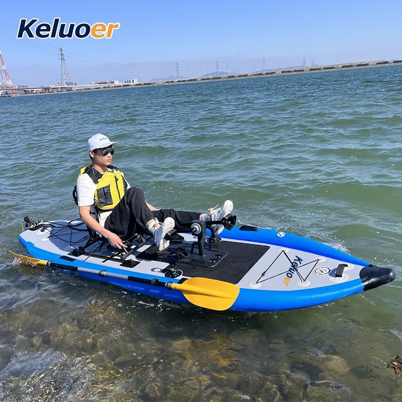 Inflatable แบบพกพาที่ถอดออกได้เรือคายัคตกปลาเหยียบไดรฟ์ SUP เรือแคนูเรือคายัคตกปลาพอง