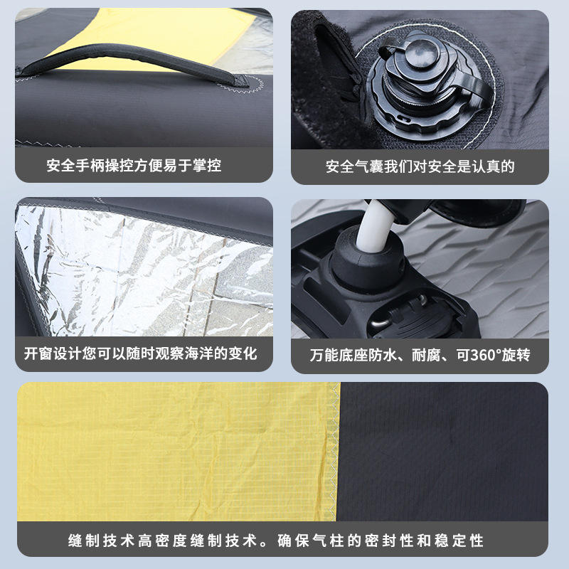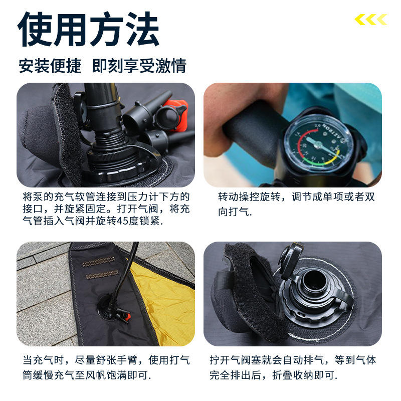 กระดานโต้คลื่นแบบเป่าลม สีเหลืองดำ 4.2 ฟุต พร้อมใบเรือแบน สำหรับแพดเดิลบอร์ด เล่นเซิร์ฟ กีฬาทางน้ำ