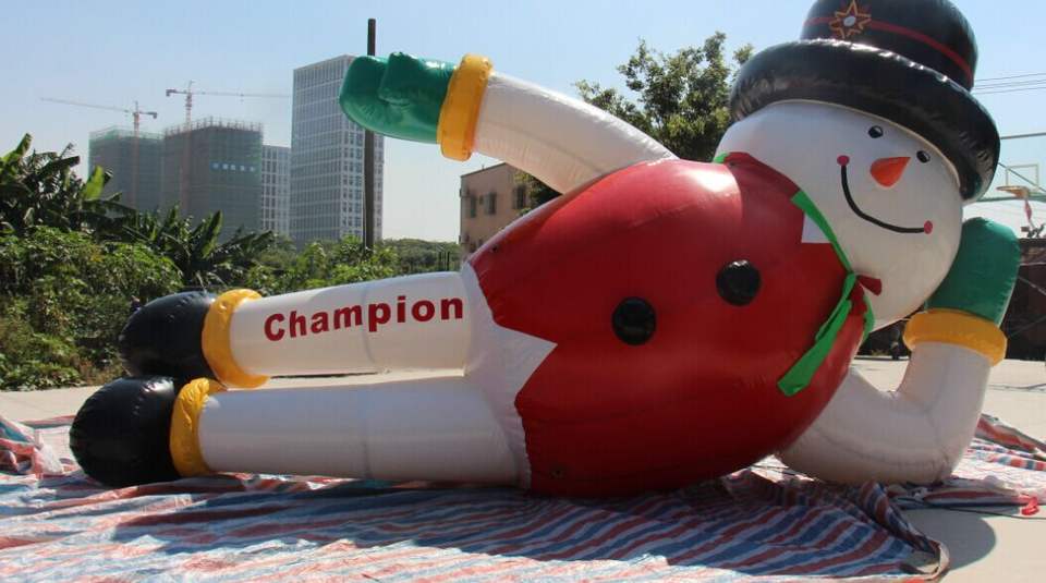 ซานตาคลอสเป่าลมพร้อมพิมพ์ลายดิจิทัลและปั๊มลมไฟฟ้า สูงกว่า 12 ฟุต สำหรับงานโฆษณาและกิจกรรมสำคัญ