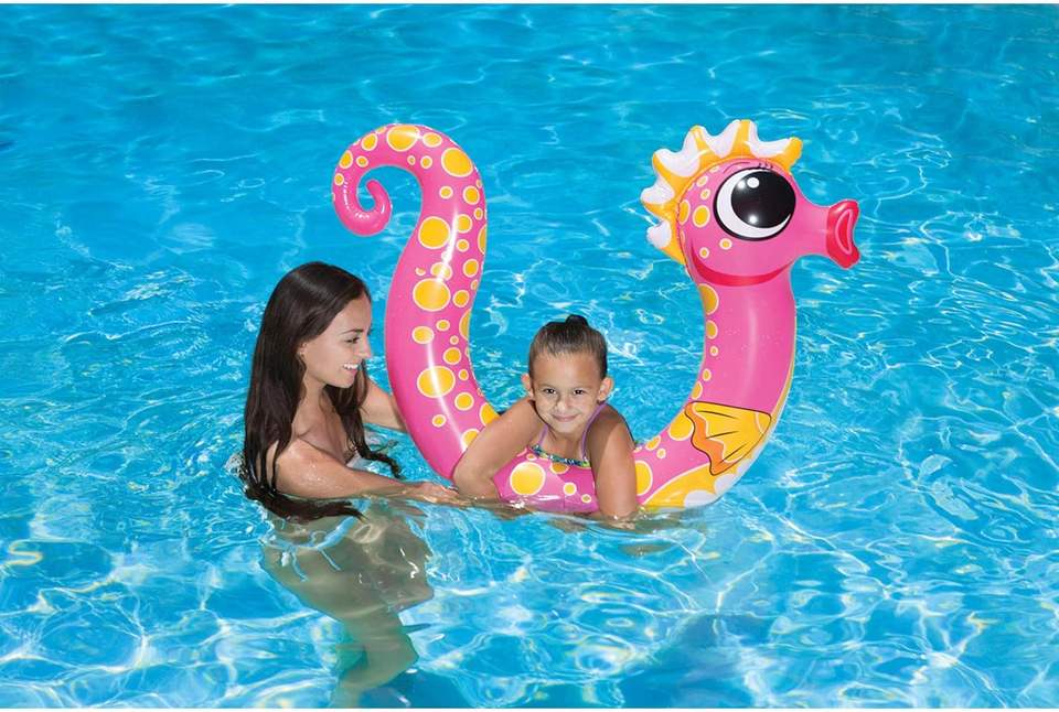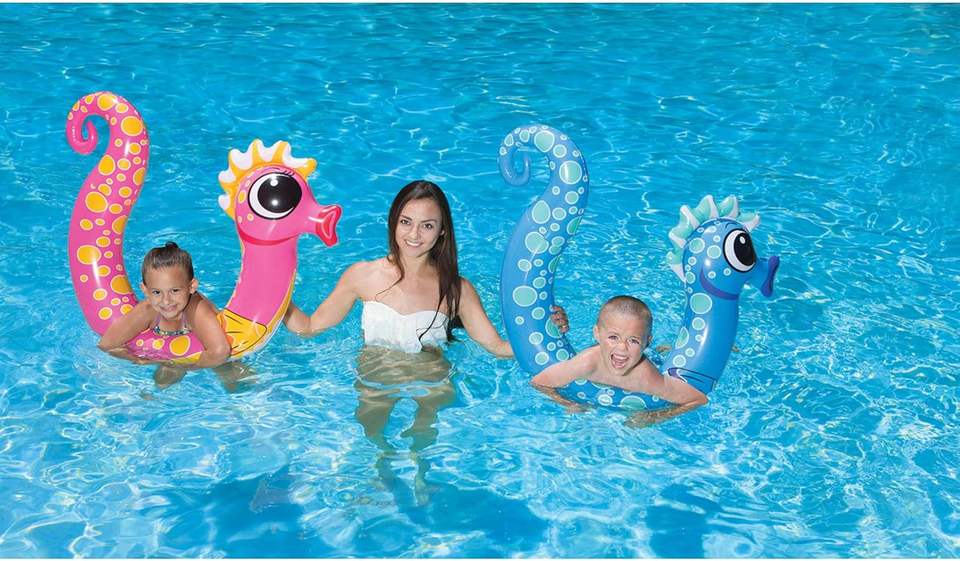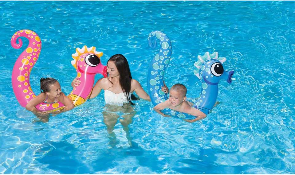 ห่วงยางเป่าลมรูปม้าน้ำ PVC สำหรับเด็ก สีสันสดใส สำหรับงานปาร์ตี้ริมสระ