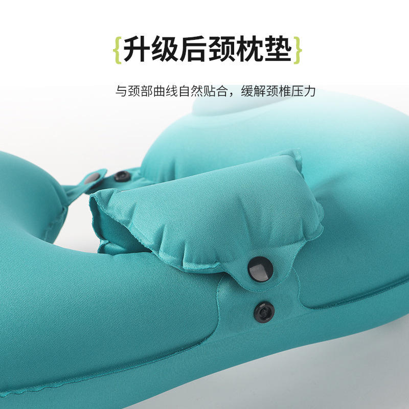 หมอนรองคอรูปตัว U แบบพกพา สีเขียวพีค็อก ขนาด 28x24x10 ซม. พร้อมถุงเก็บและที่ปิดตา ที่อุดหู