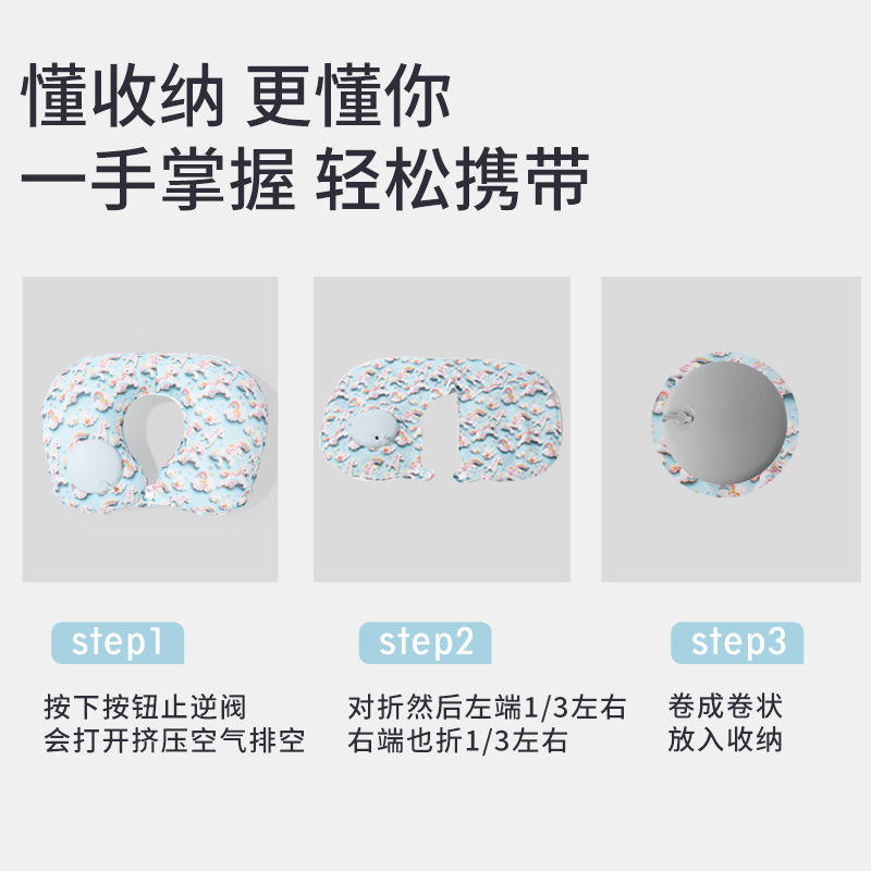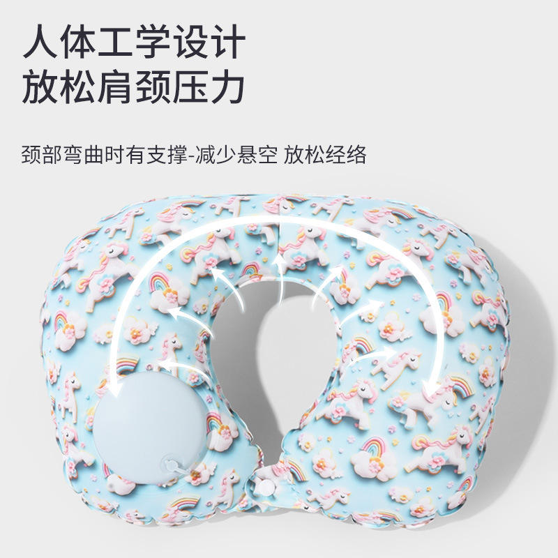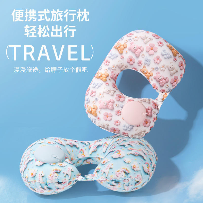 หมอนรองคอรูปตัว U แบบพองได้ 28X26X14 ซม. ลายการ์ตูนสัตว์ หมอนเดินทางแบบพกพา หมอนรองคอสำหรับผู้ใหญ่
