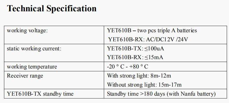 ชื่อผลิตภัณฑ์:เซ็นเซอร์ YET610b กลางแจ้งสำหรับประตูอัตโนมัติ