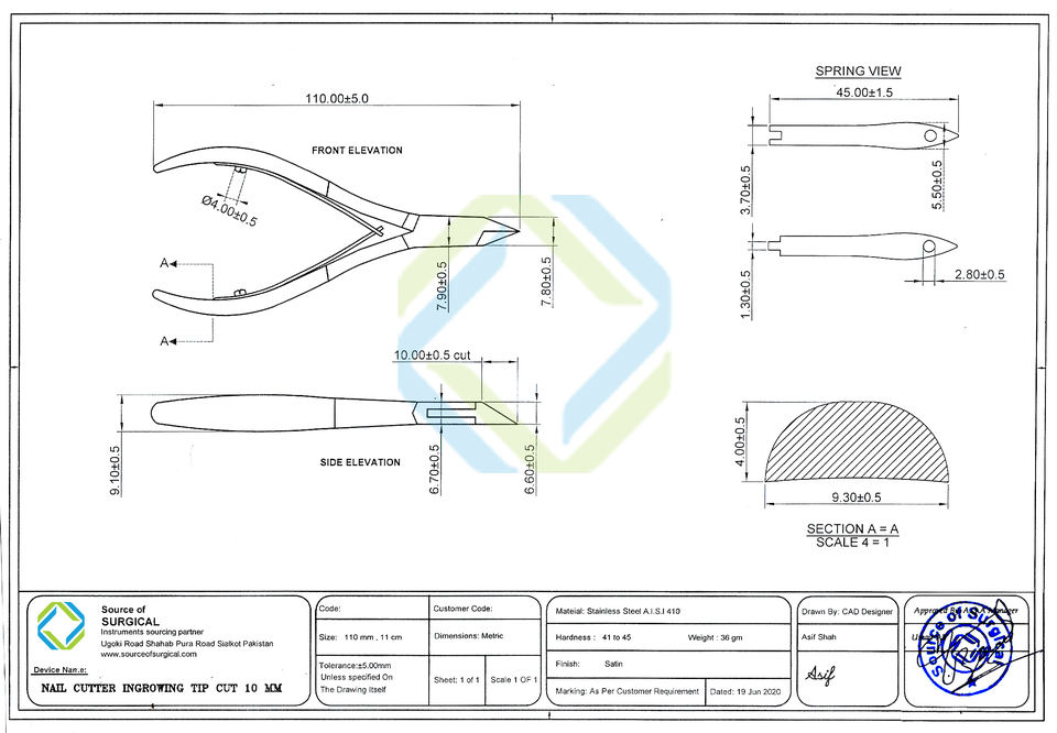ที่ตัดเล็บขบสแตนเลสแบบแบน ปากกว้าง 10 มม. ทนทาน ใช้ตัดเล็บเท้า ทำเล็บมือ เล็บเท้า ตัดหนังกำพร้า