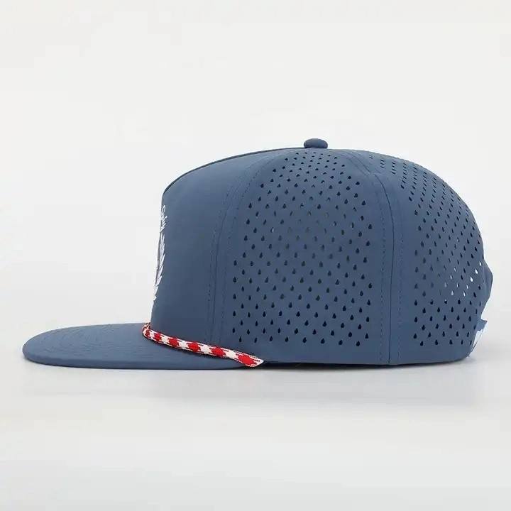 หมวกแก๊ปเบสบอล Injae Vina OEM คุณภาพสูงแบบ 5 ชิ้น ผลิตตามสั่ง พร้อมโลโก้ยาง/PVC แบบเลเซอร์ ดีไซน์รูระบายอากาศน่ารัก และโลโก้ปะติด