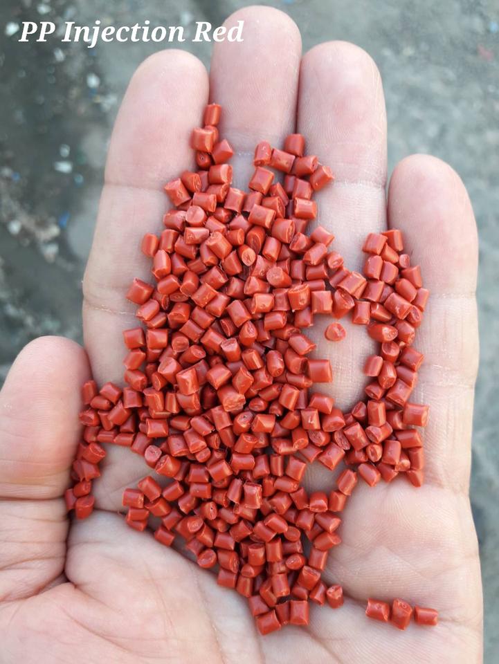 เม็ดพลาสติก PP สีแดง เกรดฉีดขึ้นรูป ผลิตจากพลาสติกรีไซเคิล วัสดุเกรดฟิล์มสำหรับอาหารและเครื่องมือแพทย์ คุณภาพเยี่ยมสำหรับการขึ้นรูป รูปลักษณ์สวยงาม