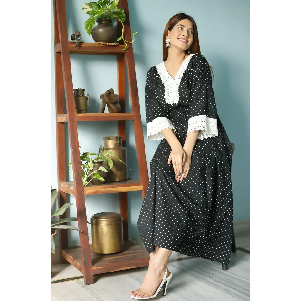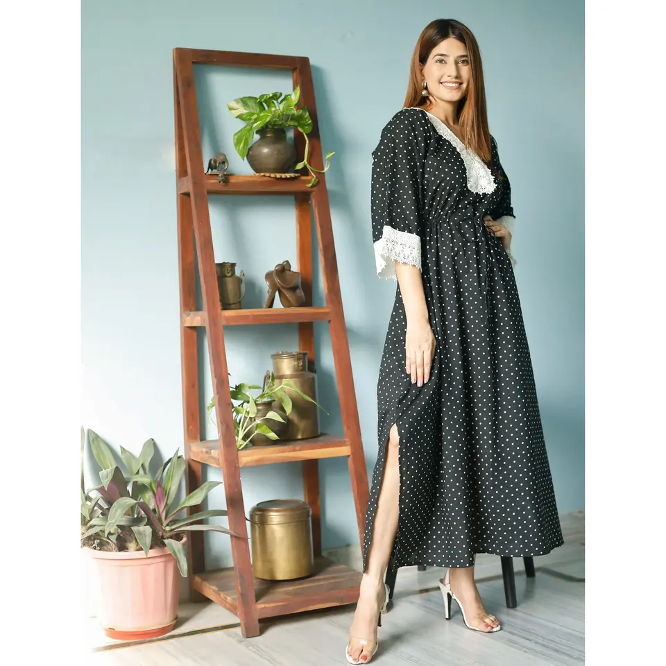 ชุดคลุมยาวผ้าฝ้ายลายจุดสีดำ งานถักโครเชต์ สำหรับผู้หญิง ดีไซน์หรูหรา แบบพอดีตัว ไซส์พลัส แฟชั่นที่ใส่สบาย