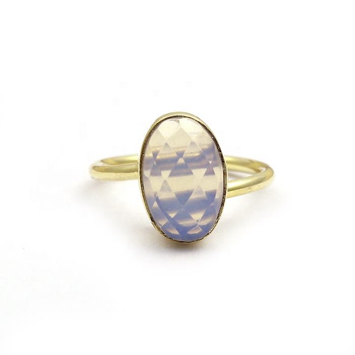 แหวนพลอยพลอยคาลซิโดนีสีฟ้าหมึกออกแบบด้านหน้าปรับขนาดได้แหวนพลอยสีฟ้าเหลี่ยมเพชรพลอยสีฟ้าหมึกเจียระไน