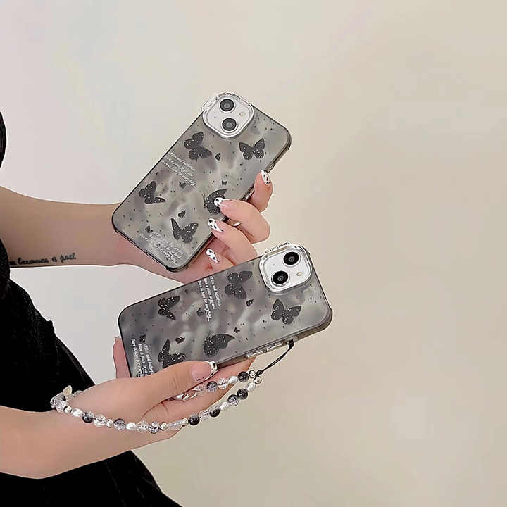 Ink Dot Black Butterfly Phone Cases With Bead Bracelet Pleated Pattern Metal Lens Frame R for Iphone X XR XS MAX 7G 8G 7/8 PLUS