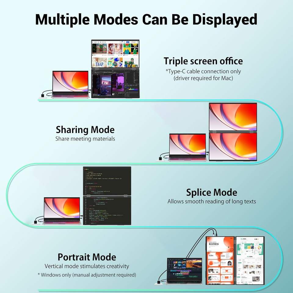 Innoview 18.5 \" ตัวขยายแล็ปท็อป LED 115% GB 100Hz ระบบจอภาพสามจอ1080P สองชั้นพับเก็บได้สำหรับ Windows Mac