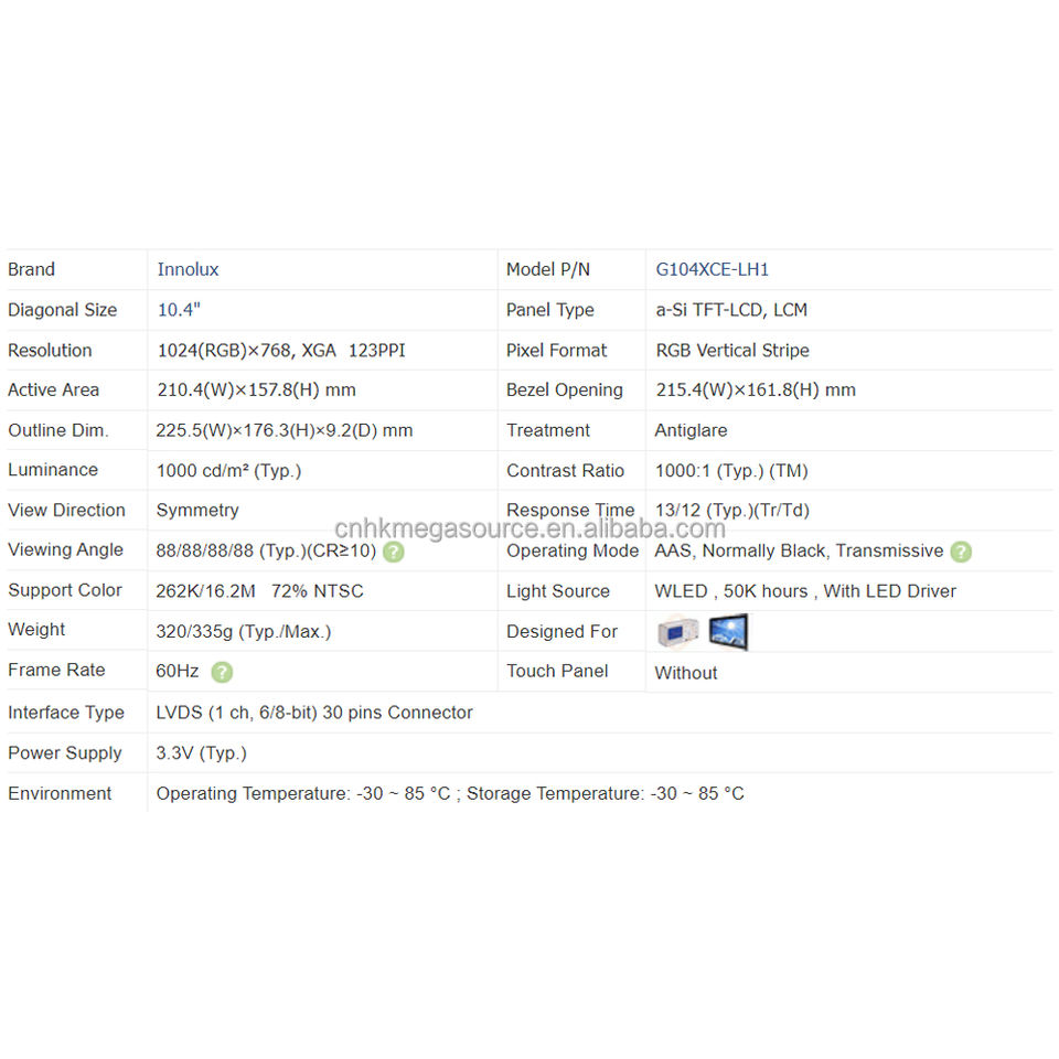 หมายเลขรุ่น: G104XCE-LH1