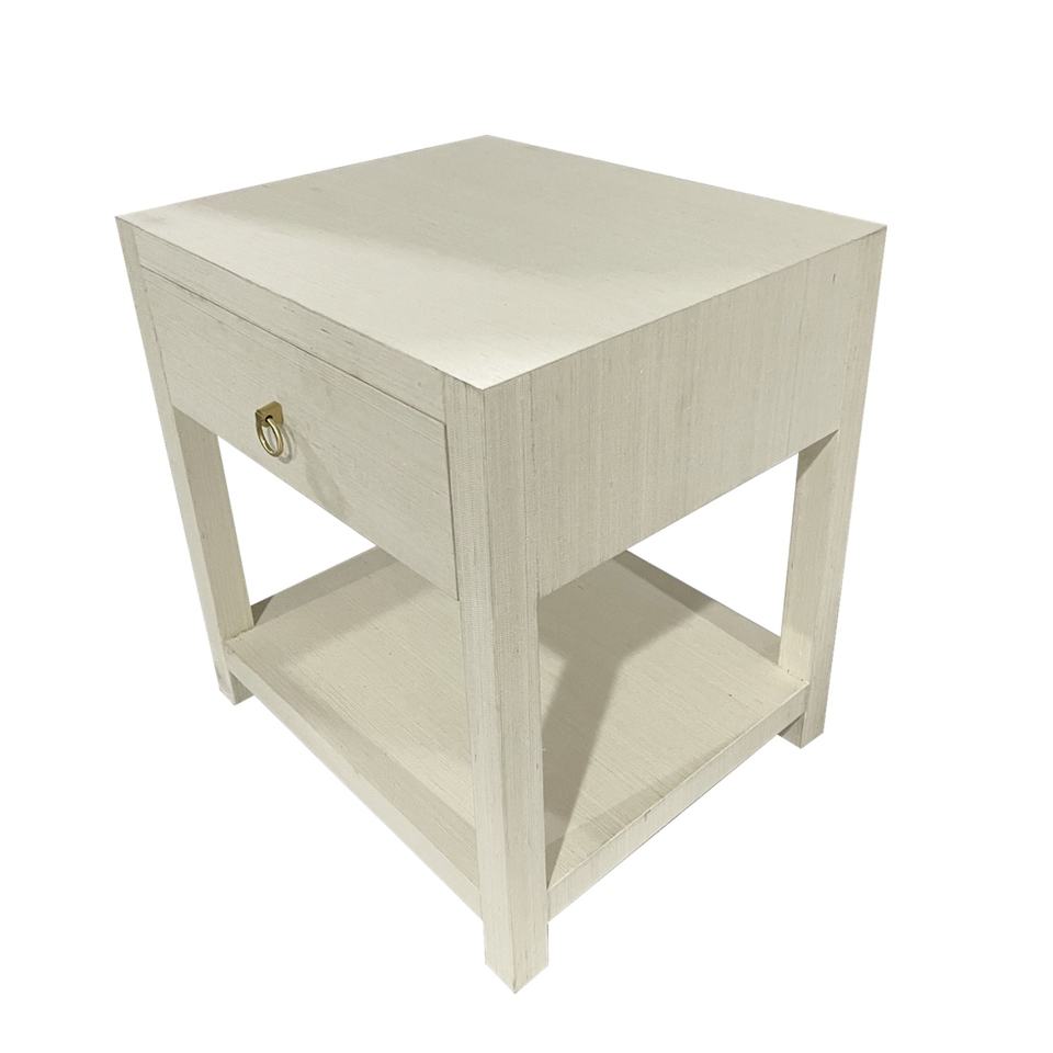 โต๊ะข้างเตียงตกแต่งสไตล์มินิมอล โครงไม้หุ้มผ้าหญ้าสีขาวอินโนวา