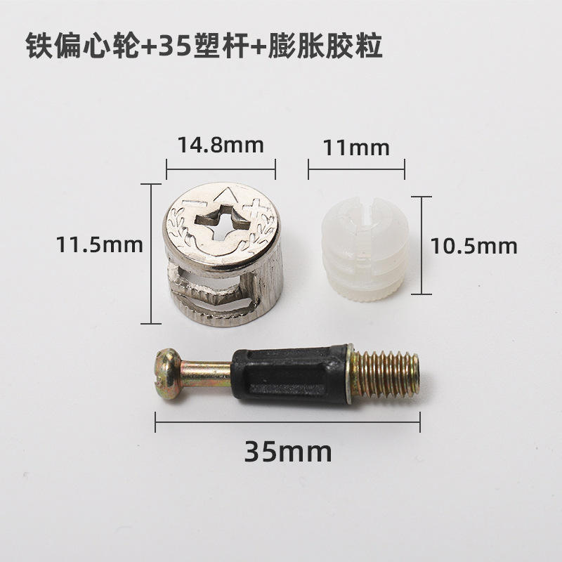 นวัตกรรมตัวเชื่อมต่อเฟอร์นิเจอร์แบบ2-in-1แบบ3-in-1สกรูเหล็กพลาสติกที่ปรับได้อย่างรวดเร็วทนทานต่อการบุกเบิกฮาร์ดแวร์
