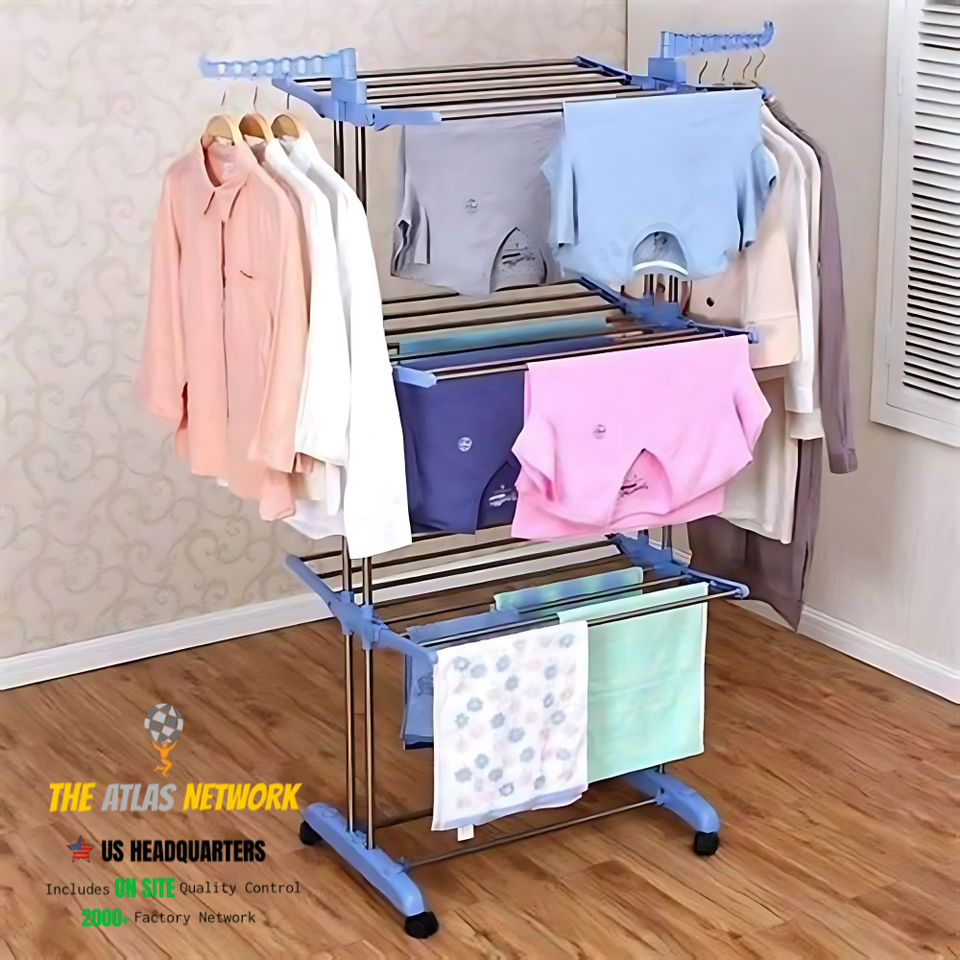 ราวตากผ้าแบบพับได้ 3 ชั้น นวัตกรรมใหม่ กันน้ำ ปรับความสูงได้ พร้อมล้อเลื่อน