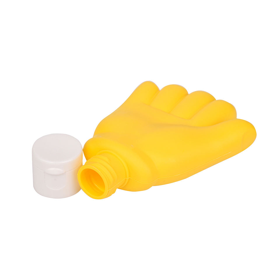 หลอดครีมขวดครีมกันแดดทรงถุงมือสีเหลืองบรรจุภัณฑ์ดีไซน์นวัตกรรมรูปทรงถุงมือ