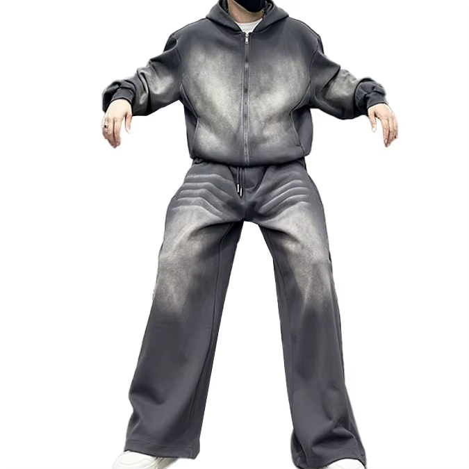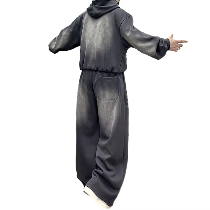 ชุดกีฬากันเหงื่อสำหรับผู้ชายชุดวอร์มผ้าหนามีฮู้ดและกางเกงวิ่ง