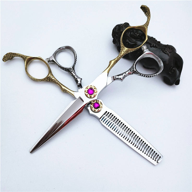 กรรไกรตัดผมอินูเอะ คากามิ R4-6 นิ้ว สแตนเลสสตีล ด้ามจับครึ่งทอง สำหรับช่างตัดผมมืออาชีพ