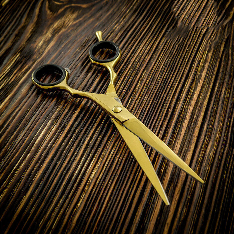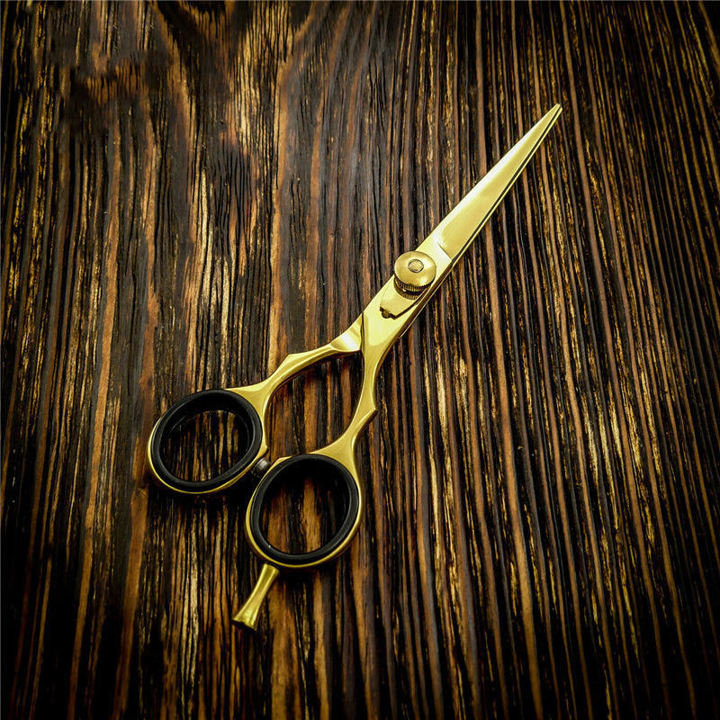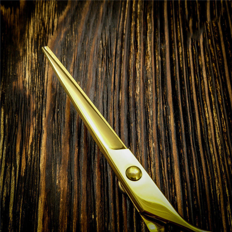 อิโนเอะ คาซากิกรรไกรตัดผมสีทอง 6 นิ้ว หัวตรง กรรไกรตัดผมมืออาชีพ สแตนเลสชุบโครเมียม ด้ามจับสั้น