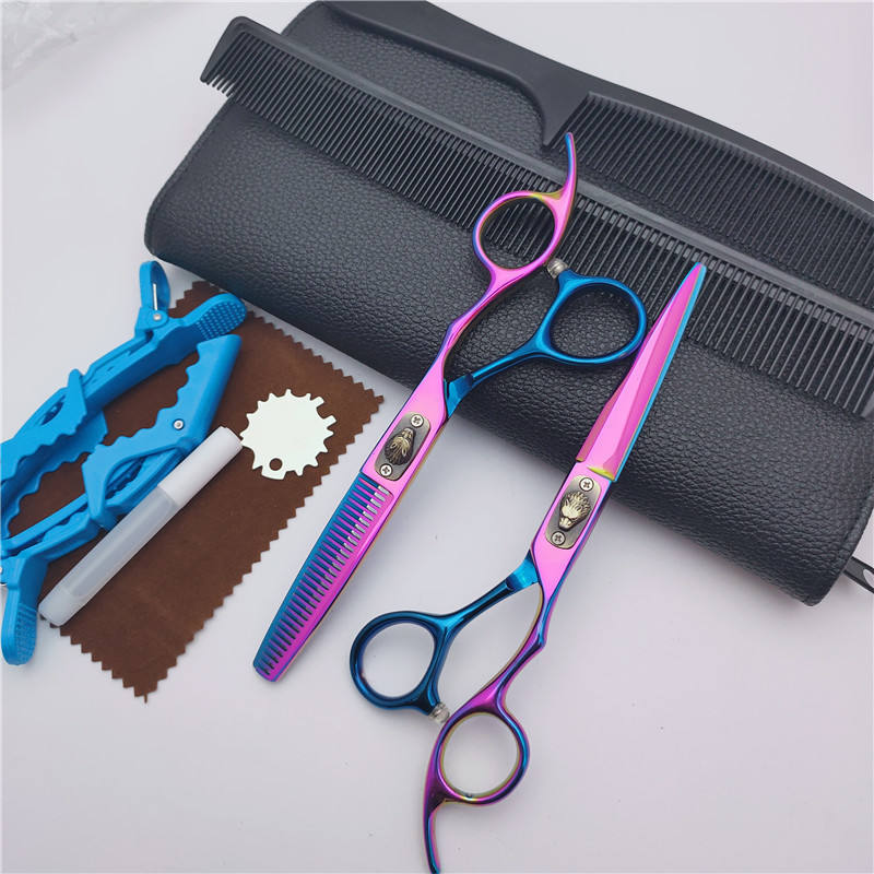 กรรไกรตัดผมอิโนะอุเอะ คาซึนาริ ชุดสีฟ้าเจ็ดสี กรรไกรซอยผม สำหรับคนถนัดขวา สแตนเลส SUS440C