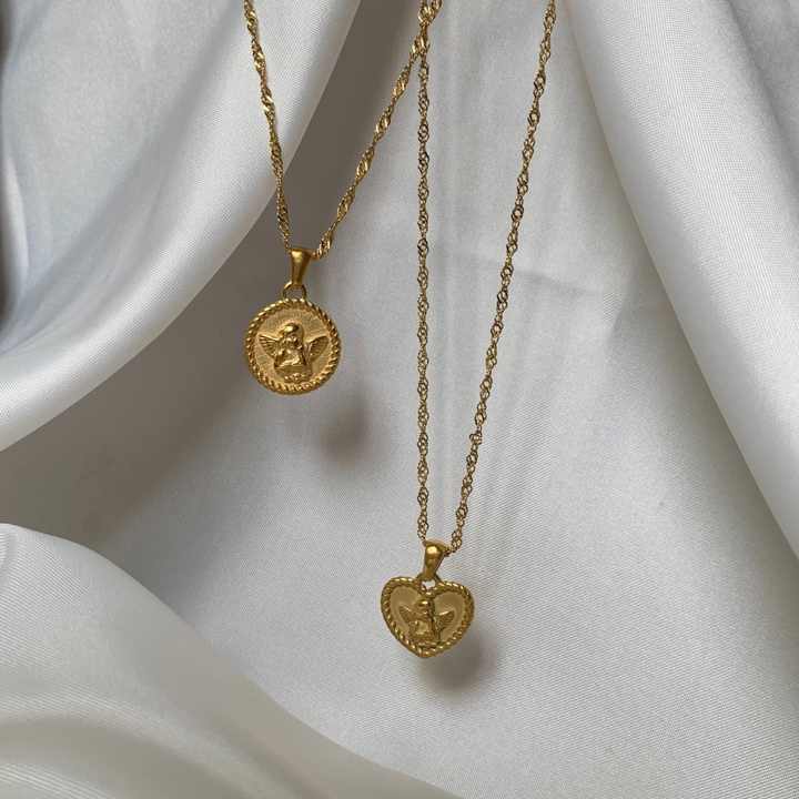สร้อยคอรูปหัวใจเทวดาเคลือบทอง 18k สแตนเลสสตีลสำหรับผู้หญิง ขายดี