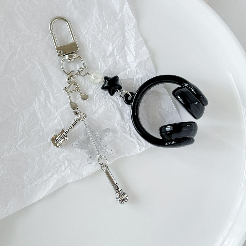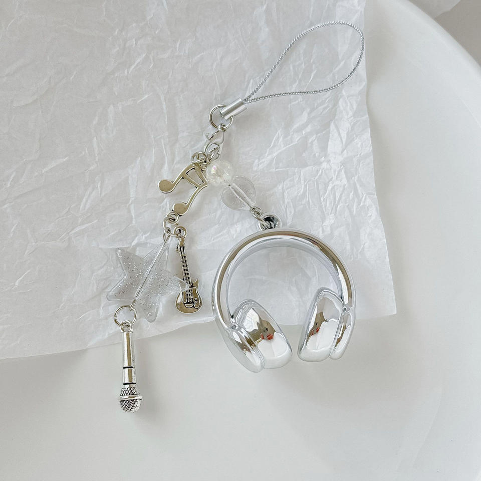ห่วงคล้องโทรศัพท์มือถือรูปหูฟังดนตรี จี้ห้อยกระเป๋าแบบปรับแต่งได้ พวงกุญแจรูปโน้ตดนตรี ดีไซน์สร้างสรรค์ คุณภาพสูง