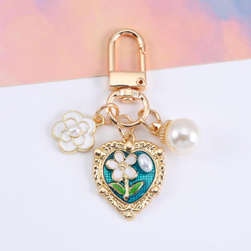 Ins Pearl for Love Flower Keychain Pendant Fashionable AirPods Bluetooth Earphone Set Keychain for Couple Bag Decoration